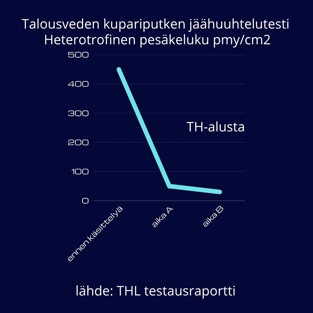 Mittaustulos THL:n tutkimuksesta Kuopiossa ennen ja jälkeen jäähuuhtelun.